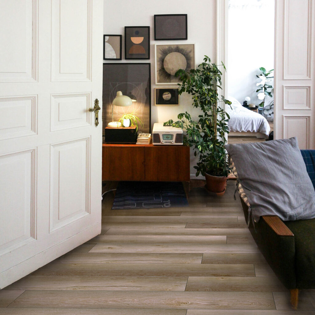 Kraftvolles Schokoladenbraun verbindet sich im Dekor Gnarrenburg Eiche Titan mit zartem Beige und dunklem Steingrau zu einem Raumeindruck voller Entschlossenheit. Ein Boden, der dominiert und den Stil vorgibt.