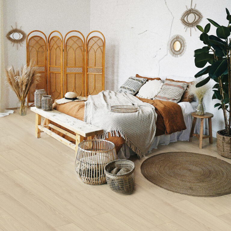Helles Beige, Honiggelb und Grau schaffen im Dekor Salisbury Kastanie ein solides, zeitloses Fundament für eine moderne Raumgestaltung. Auf der Diele entsteht durch das Farbspiel ein angenehmes Greige.