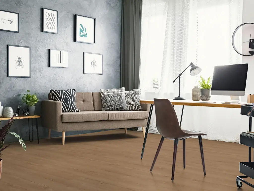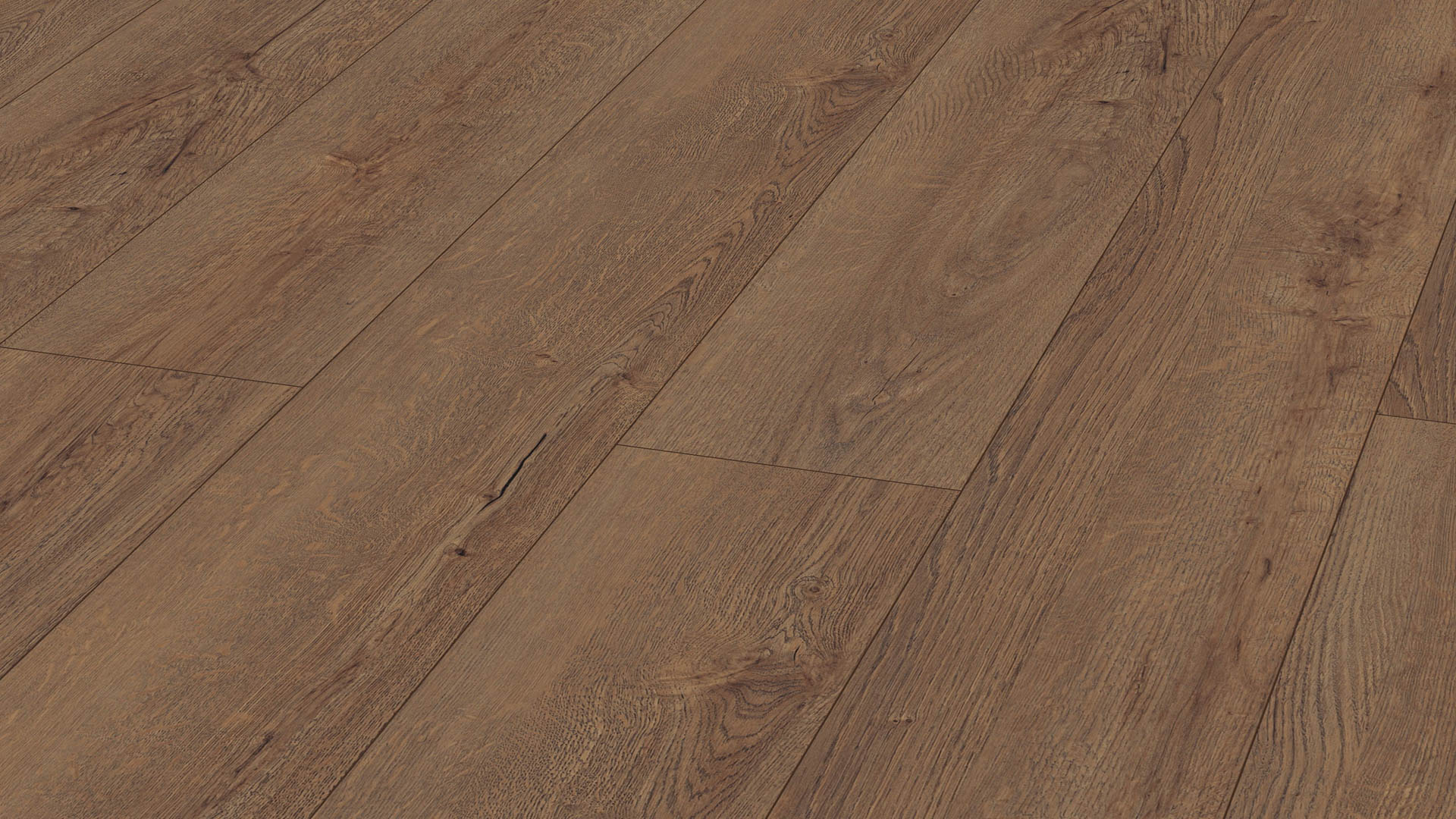 Sanftes tiefes Braun dominiert das Dekor Horizont Eiche Kaffee. Dunkle Einschlüsse sorgen für den Espresso-Kick, während sich in helleren Passagen das Licht widerspiegelt. Ein Boden mit Seele und Strahlkraft.