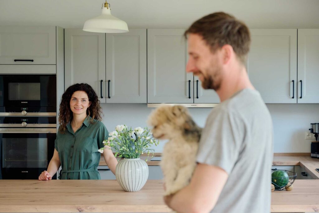 Als Eltern war es uns sehr wichtig, nachhaltig neu zu bauen. Unser Haus ist aus Holz und wird mit einer Wärmepumpe beheizt. Wir haben so viel wie möglich selbst gemacht und auch die Materialien zum Innenausbau unter ökologischen Gesichtspunkten ausgesucht.